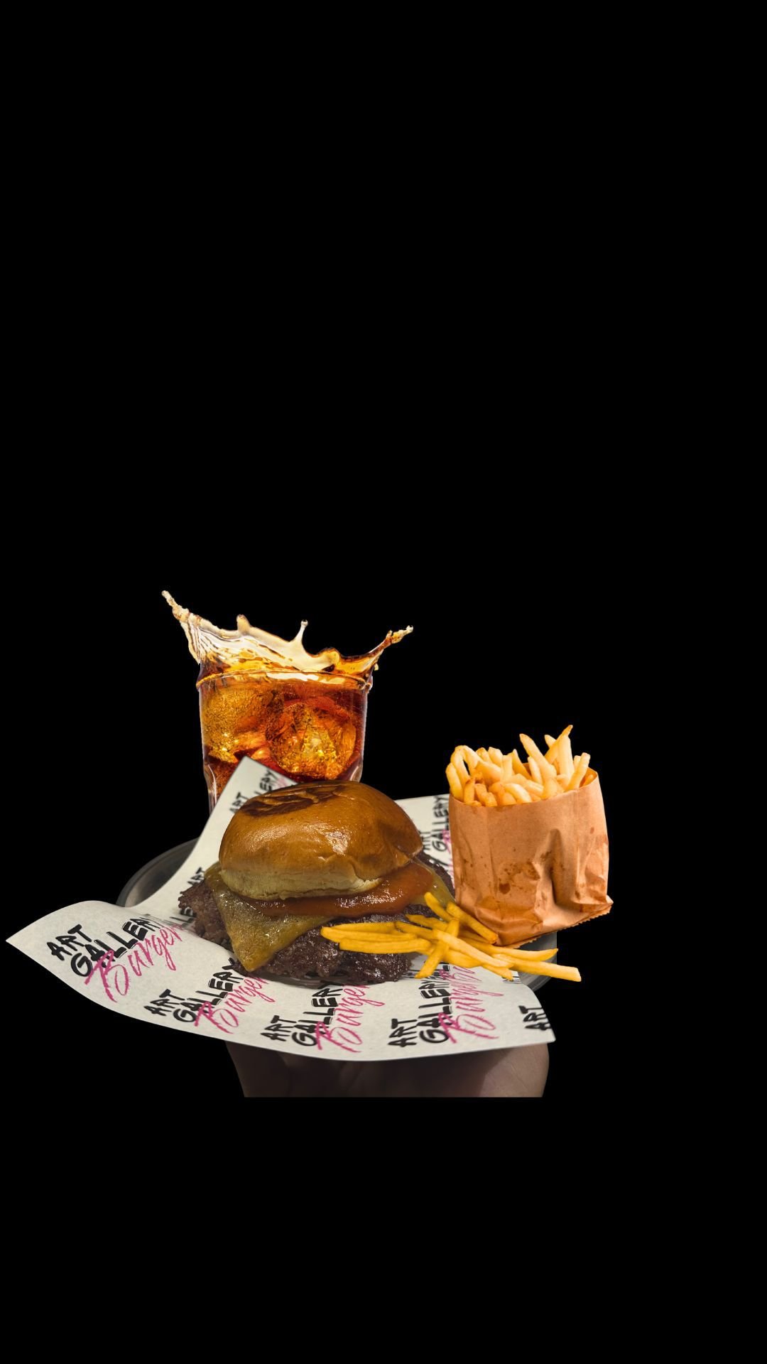 Elige entre Cheese Burger Smash, Tequeños o Fingers de Pollo. Patatas fritas incluidas y zumo o agua.